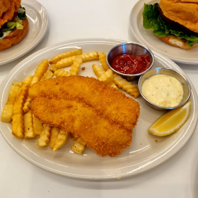 깔끔한 비주얼의 피쉬앤칩스와 수제버거.